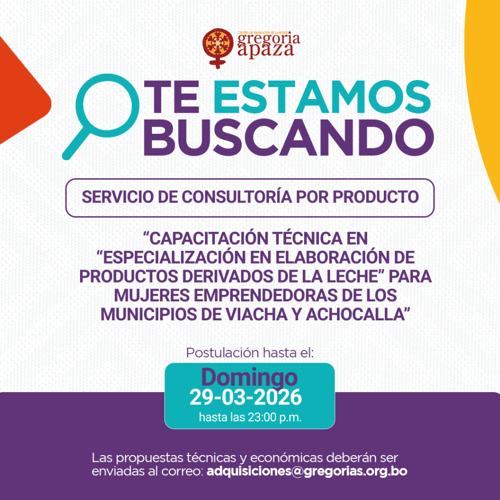 - Informaciones al correo: lecona@gregorias.org.bo, hasta el 27 de marzo del 2026.