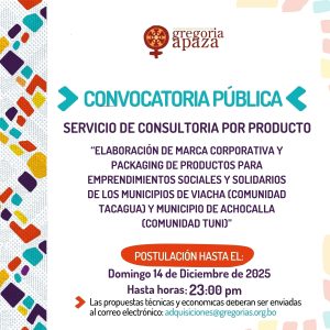 SERVICIO DE CONSULTORÍA POR PRODUCTO: “ELABORACIÓN DE MARCA CORPORATIVA Y PACKAGING DE PRODUCTOS PARA EMPRENDIMIENTOS SOCIALES Y SOLIDARIOS DE LOS MUNICIPIOS DE VIACHA (COMUNIDAD TACAGUA) Y