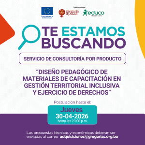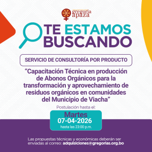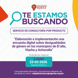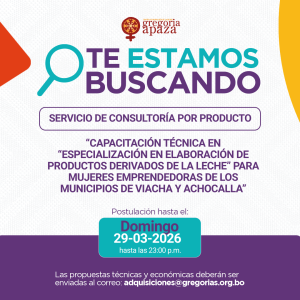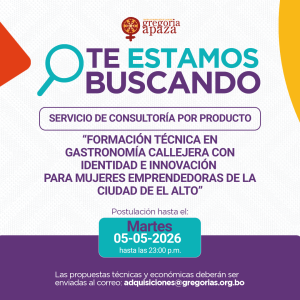 SERVICIO DE CONSULTORÍA POR PRODUCTO: “FORMACIÓN TÉCNICA EN GASTRONOMÍA CALLEJERA CON IDENTIDAD E INNOVACIÓN PARA MUJERES EMPRENDEDORAS DE LA CIUDAD DE EL ALTO” Programa: Ámbito sociopolítico –