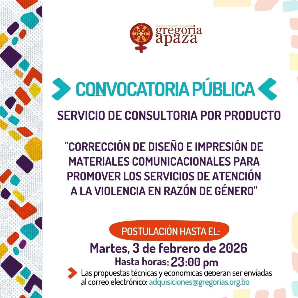 La propuestas deberán enviar hasta el MARTES 3 DE ENERO DE 2026 hasta horas 23:00 PM , en forma digital al correo: adquisiciones@gregorias.org.bo propuestas fuera de plazo por favor abstenerse.
