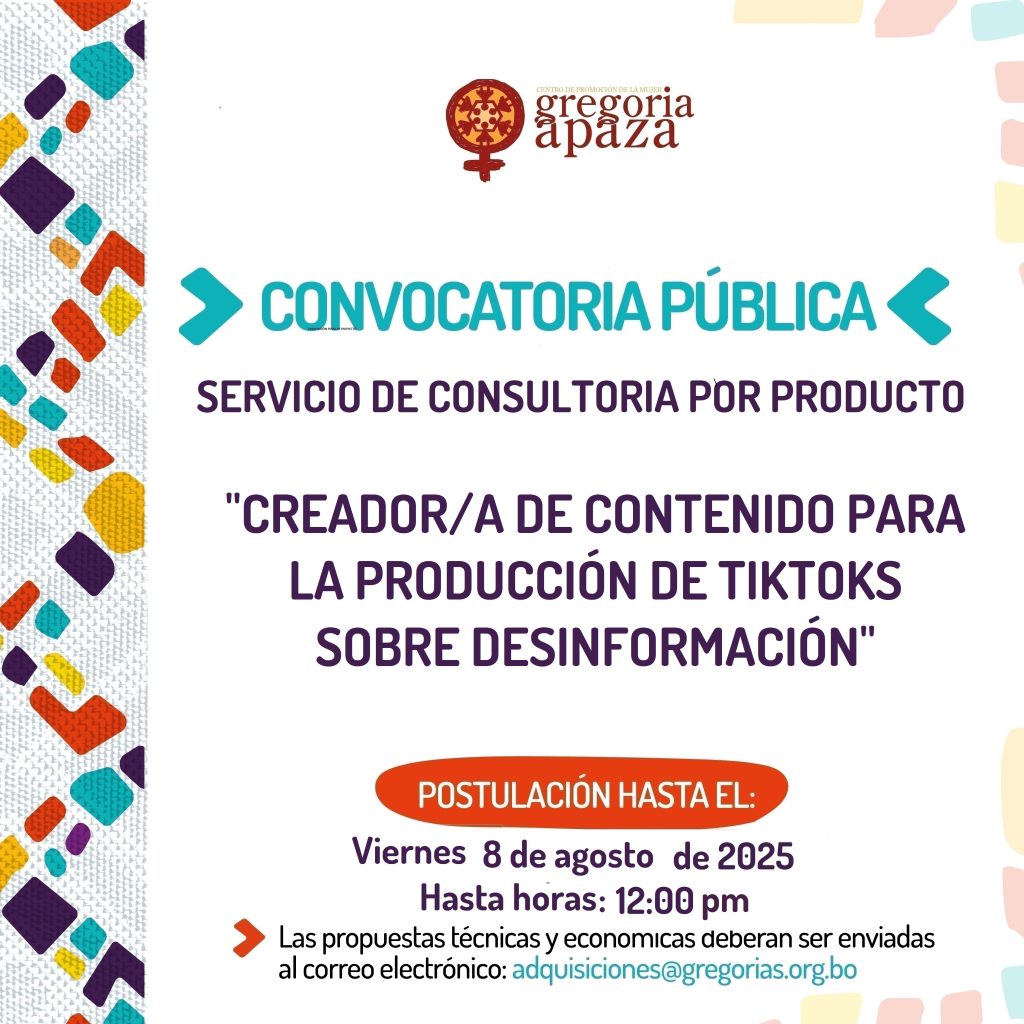 SERVICIO DE CONSULTORÍA “CREADOR/A DE CONTENIDO PARA LA PRODUCCIÓN DE TIKTOKS SOBRE DESINFORMACIÓN”