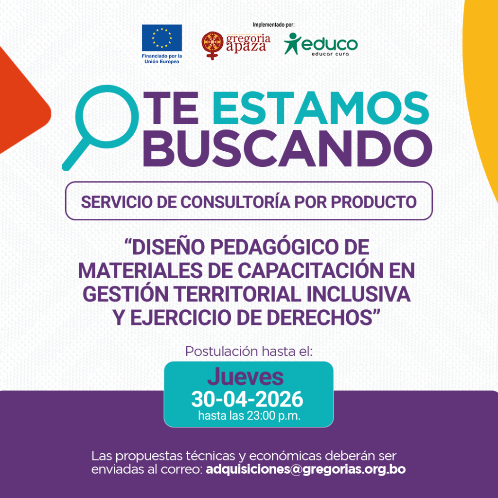La propuestas deberán enviar hasta el JUEVE 17 de 2026 hasta horas 23:00 PM , en forma digital al correo: adquisiciones@gregorias.org.bo propuestas fuera de plazo por favor abstenerse.