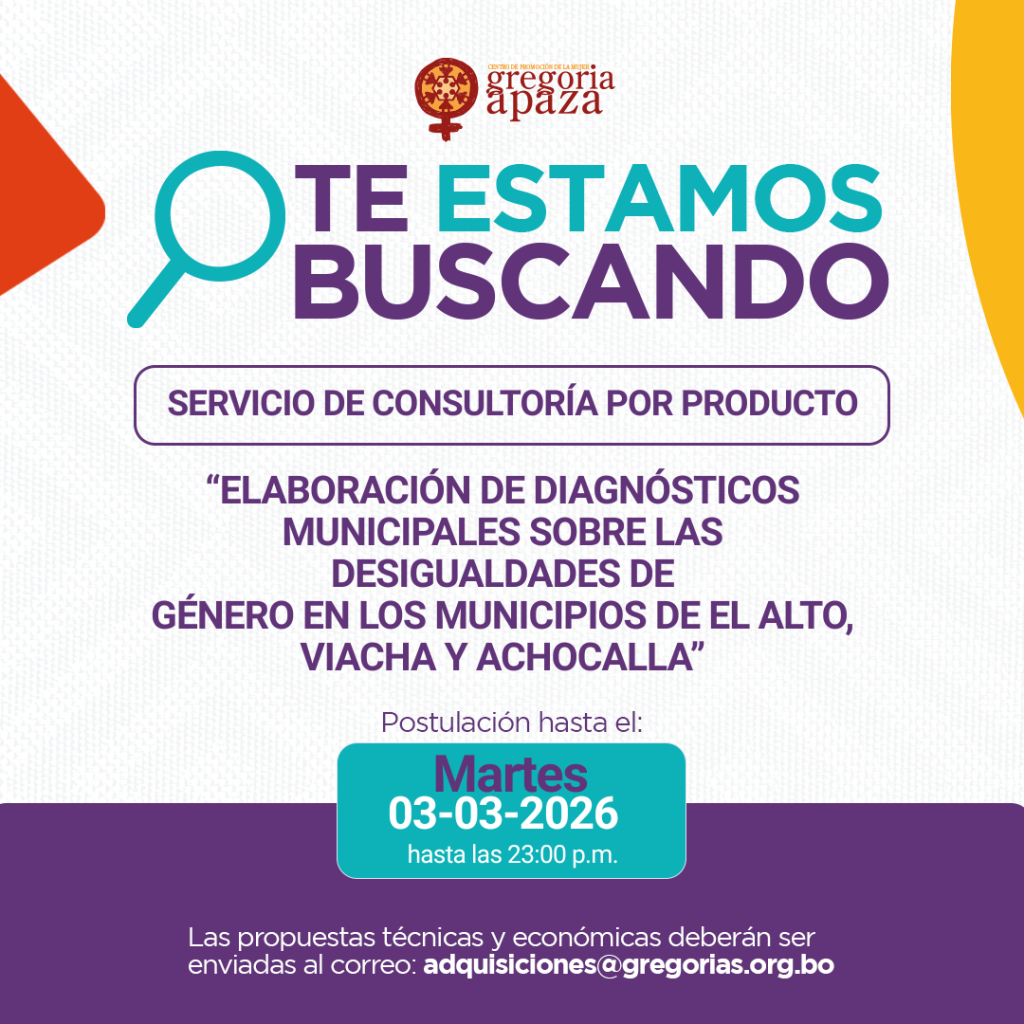 SERVICIO DE CONSULTORÍA POR PRODUCTO: “ELABORACIÓN DE DIAGNÓSTICOS MUNICIPALES SOBRE LAS DESIGUALDADES DE GÉNERO EN LOS MUNICIPIOS DE EL ALTO, VIACHA Y ACHOCALLA”