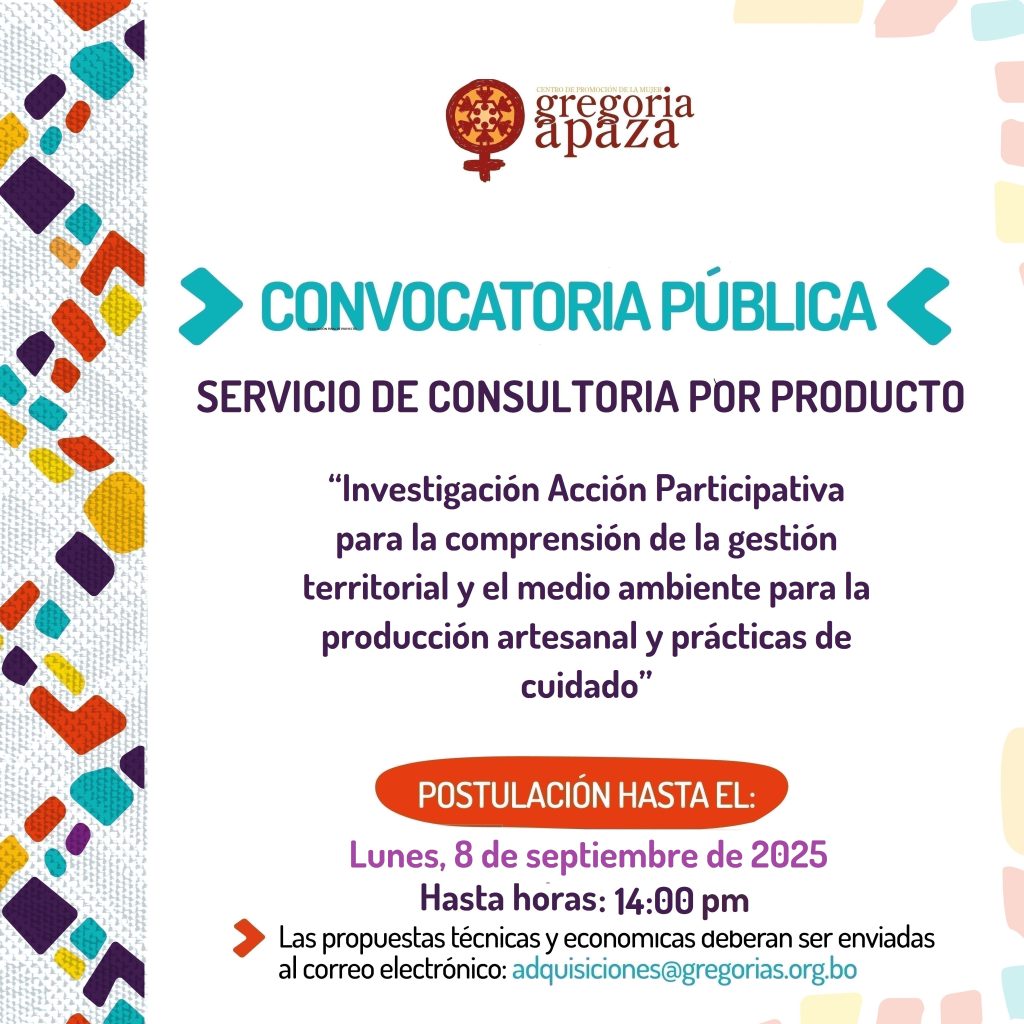 SERVICIO DE CONSULTORÍA “Investigación Acción Participativa para la comprensión de la gestión territorial y el medio ambiente para la producción artesanal y prácticas de cuidado”