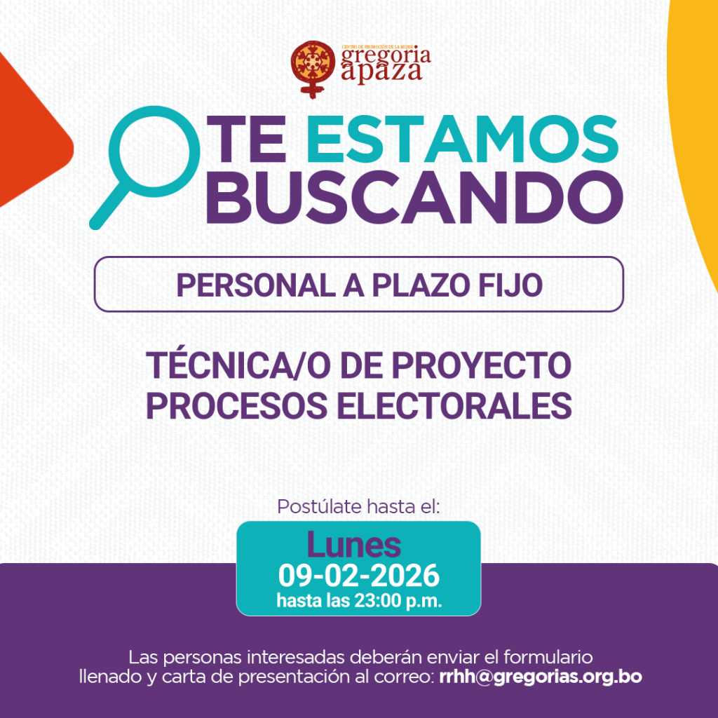 El Centro de Promoción de la Mujer Gregoria Apaza es una organización civil sin fines de lucro que busca el reconocimiento, goce y ejercicio pleno de los derechos humanos de las mujeres y requiere incorporar a su equipo de trabajo personal para el cargo de: